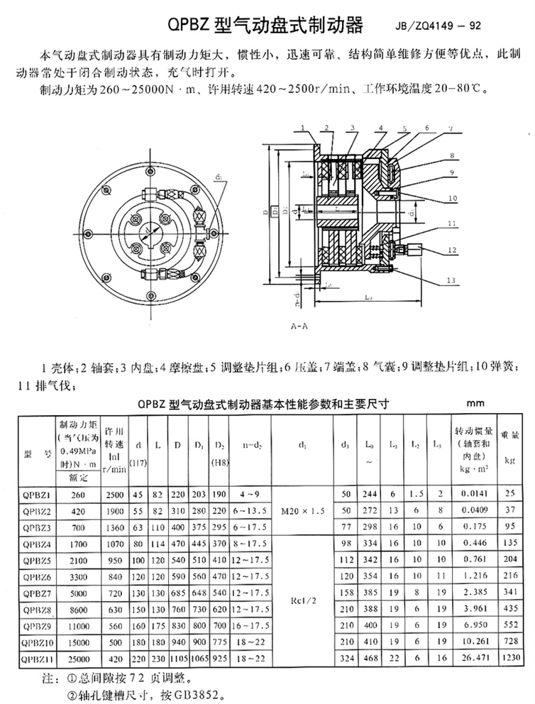 QPZ型氣動(dòng)盤式制動(dòng)器